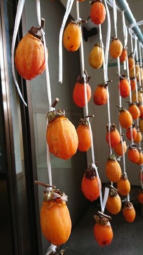 夜な夜な皮を剥いて干した渋柿 揉んで揉んでやさしく揉んで あまーくなるのは2,3日先かな