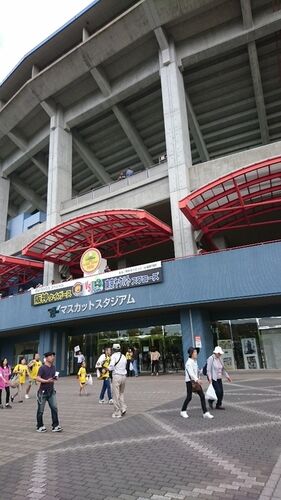 倉敷マスカットスタジアムでの 阪神対ヤクルト戦 やはり黄黒の服が多いこと 5回の休憩中 とつぜん花火が