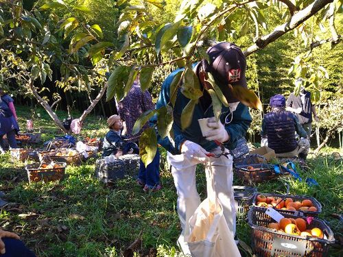 大収穫の柿を背に コーヒータイム 風が爽やか 会話も空気もうまい!