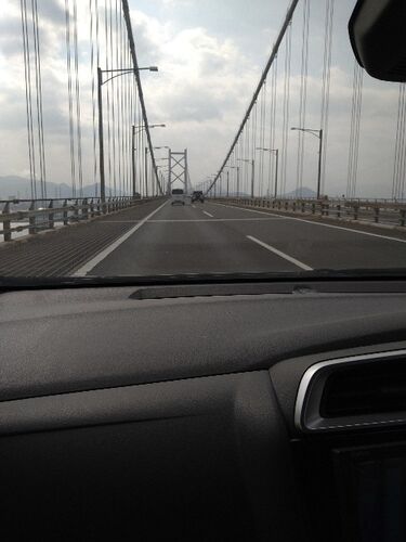 瀬戸大橋 大きくて気持ちいいですね 今治のタオル美術館まで車で 何かうたいたくなる気分